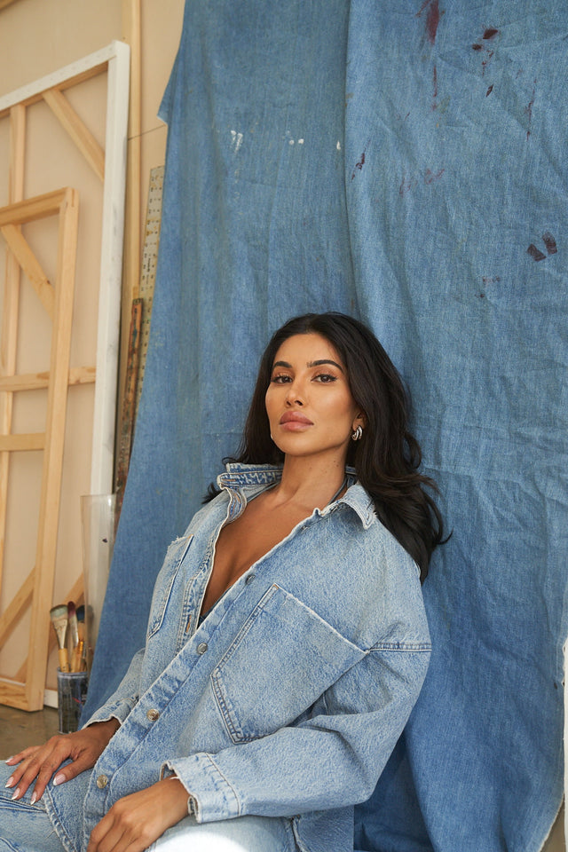 With a surrealist style, her works reflect an honest and defiant approach to cultural and societal norms with mediums spanning from oil painting, sculptures, large scale murals to apparel.